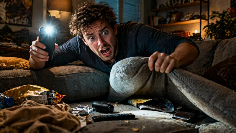 Witnesses say the man checked under couches, inside the fridge, and even briefly accused his dog of stealing it, all while illuminating dark corners with the very device he was trying to locate.